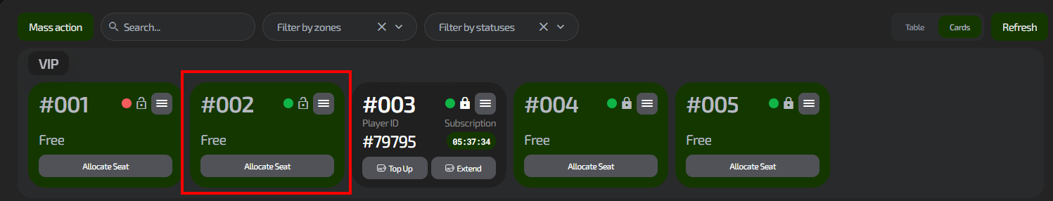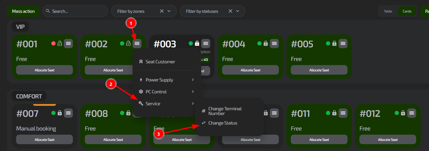 By looking at the status, the administrator immediately understands whether a guest can be seated at this PC or if another one should be selected.