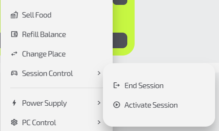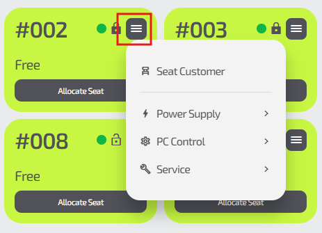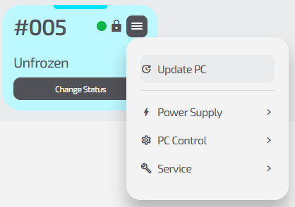The computer card menu opens when you click the “three bars” icon on the PC card.