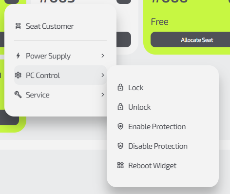 Locking dims the screen and makes the PC unavailable without starting a session. Used to prevent free play. -