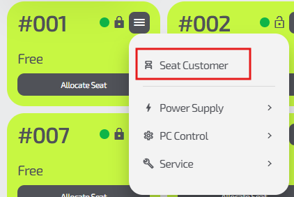 - then the standard seat assignment form opens (see 2.4 Seating a client).