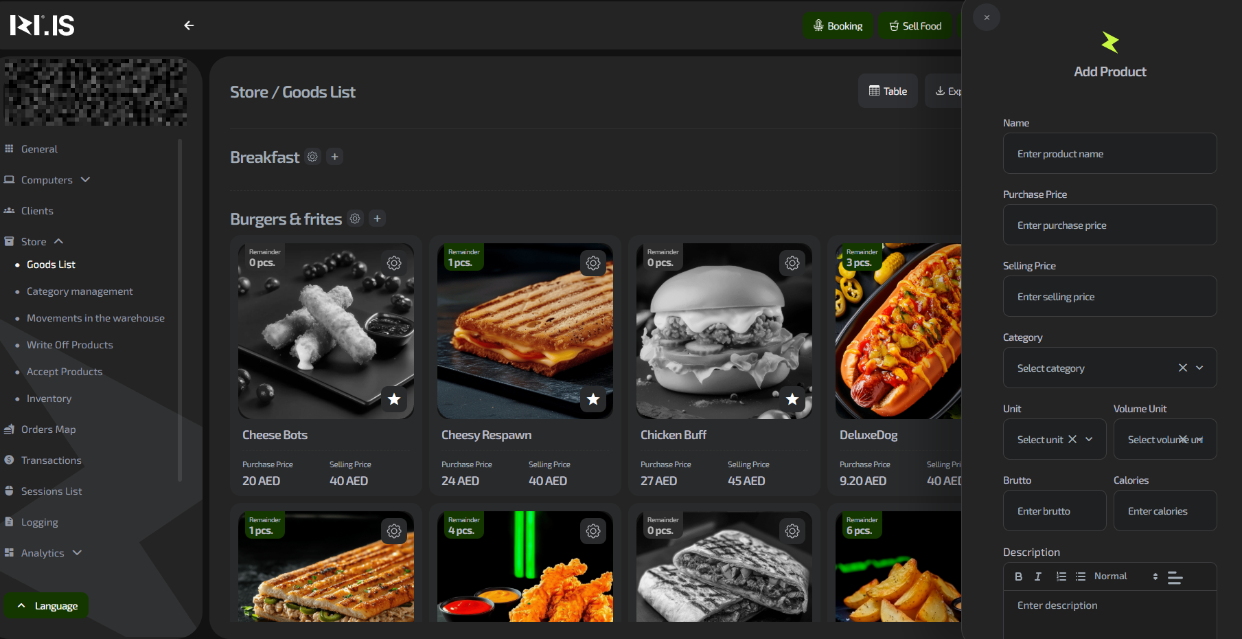 Before adding products, create categories for them (for example, “Drinks”, “Snacks”).