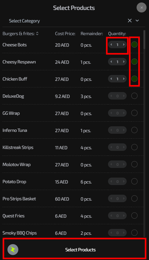 | The product is created but not shown for sale at the bar | Make sure you performed “Receive products” and specified the quantity. |