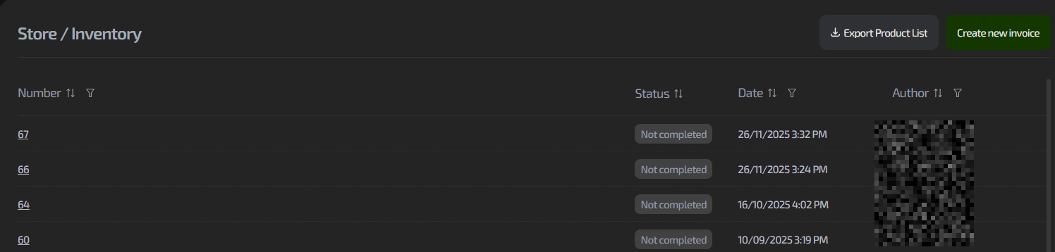 - In the “Store movement” section you can see the full history of operations: all receipts and write-offs.