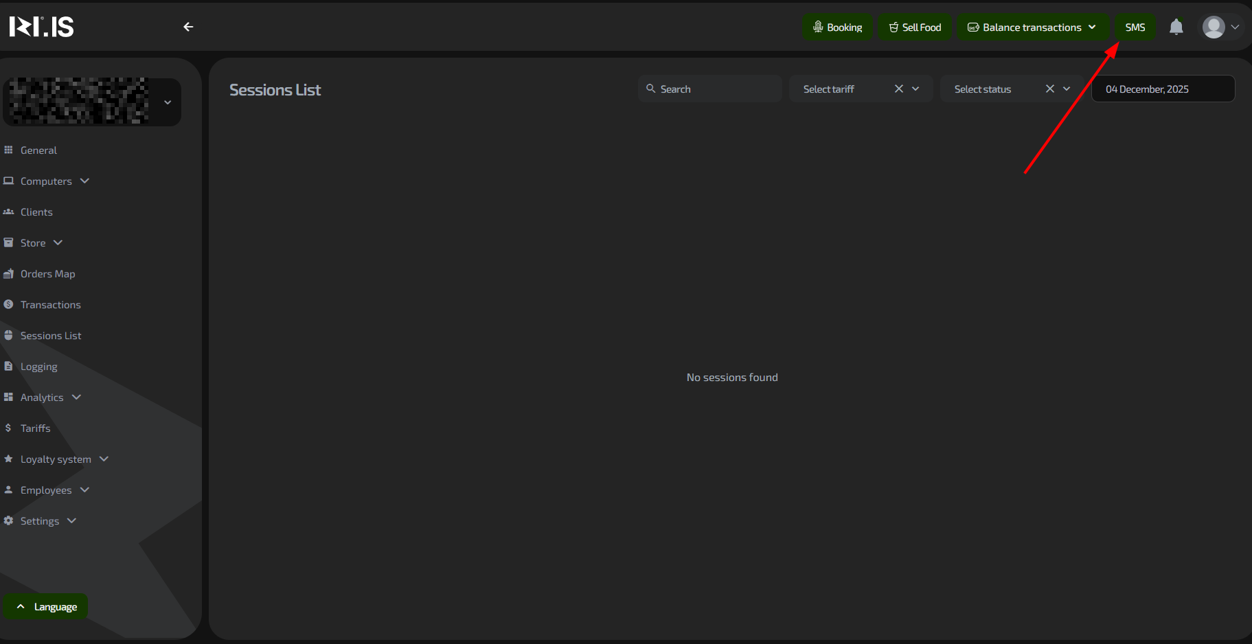 2. Click the SMS button in the top right of the screen.