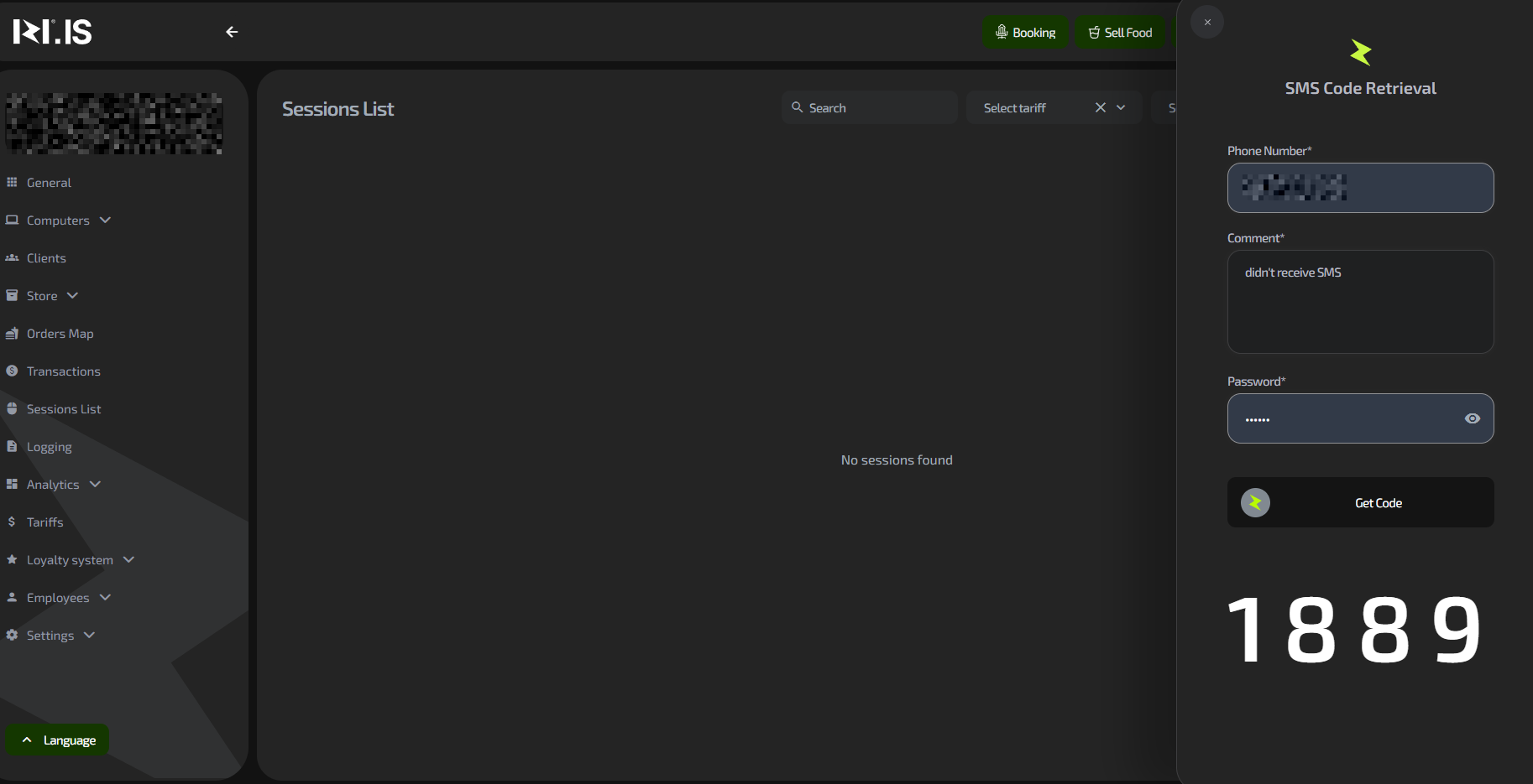 1. Enter the client’s phone number (for whom the code is needed).