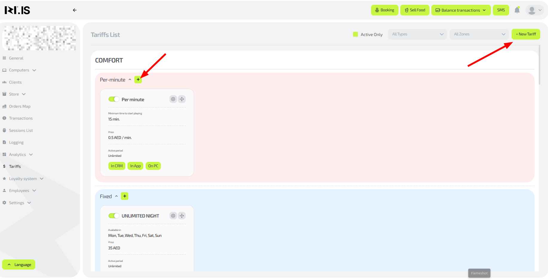 Important: to create or edit a tariff, you must be logged in under the club owner account. It is not possible to do this under an administrator account.
