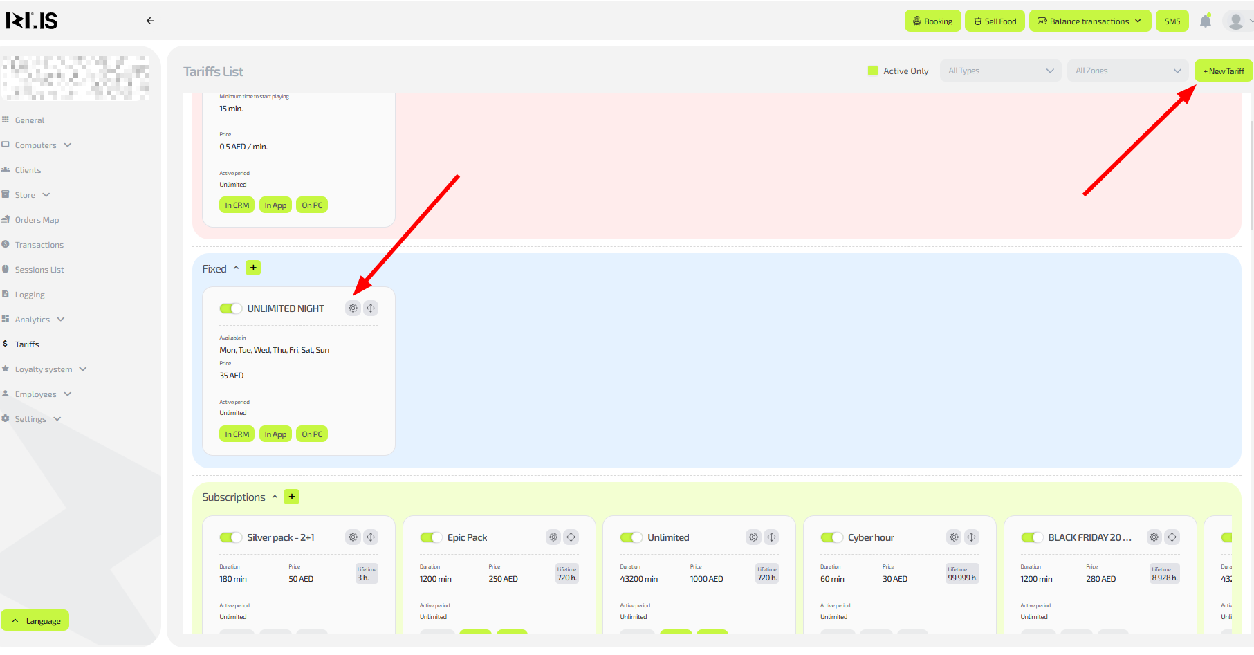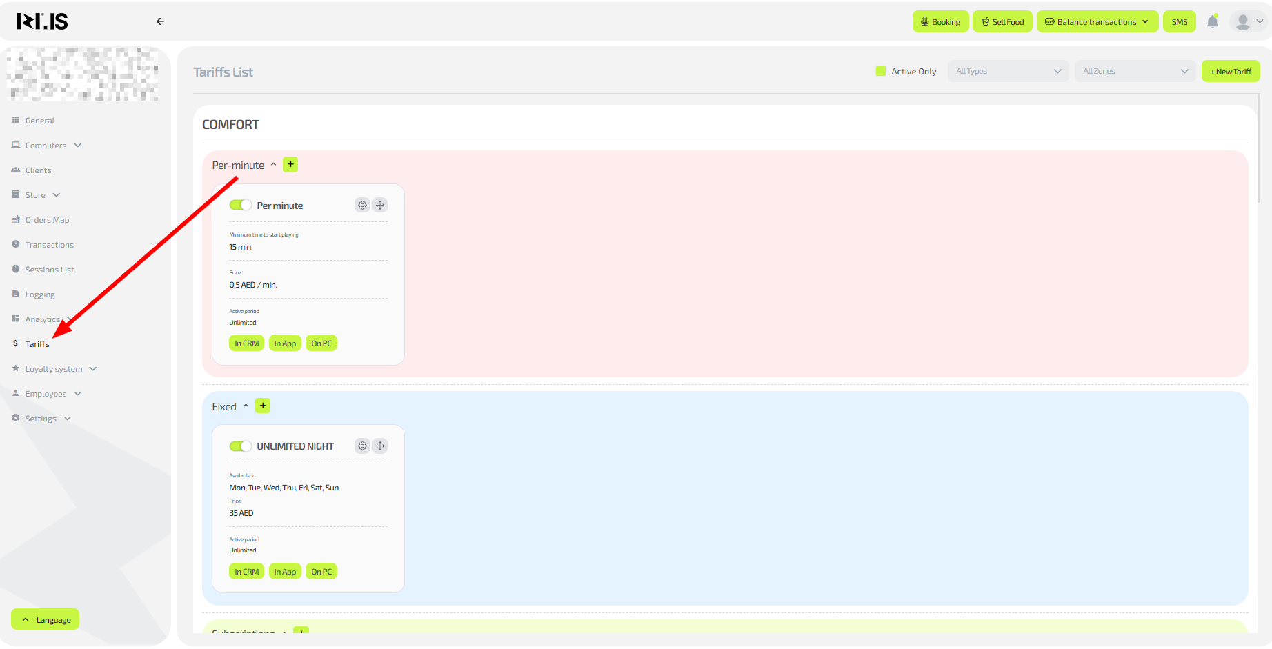 Show how a club administrator can configure different prices for tariffs depending on the days of the week (for example, weekdays and weekends) in the IZI CRM system.