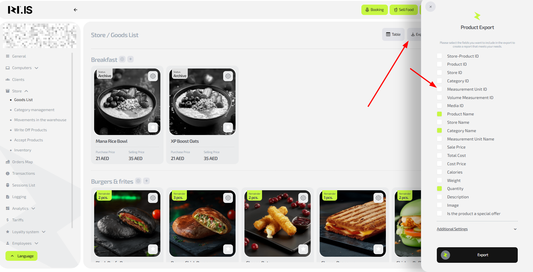 Show how a club administrator can export the items list to a file for convenient work and integration with external accounting systems in IZI CRM.