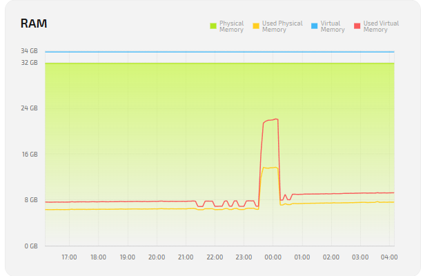 Used Virtual MemoryAmount of virtual memory in use; growth may indicate RAM shortage.
