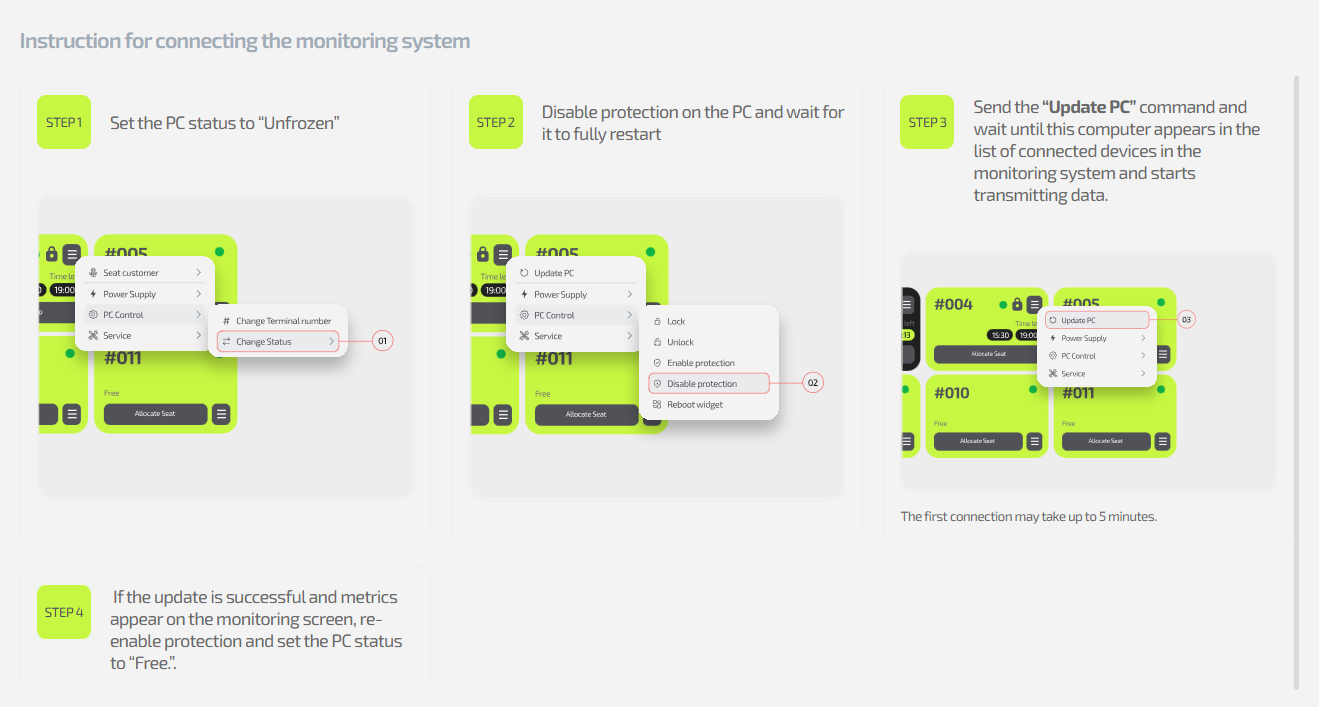 • Monitoring is enabled on gaming PCs (via IZI Monitoring client software)