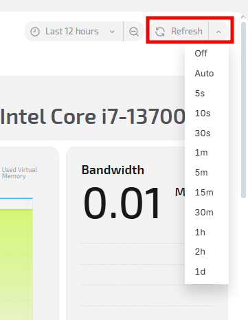 • Automatic refresh — select an interval (for example, 30 seconds, 1 minute, 5 minutes).