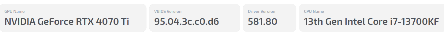 GPU NameGPU model (for example, NVIDIA GeForce RTX 3060).