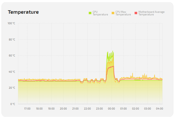Motherboard Average TemperatureAverage motherboard temperature; shows overall system heat.