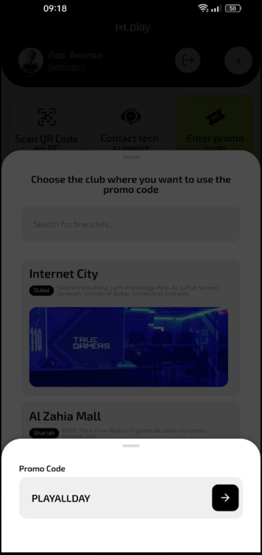 | I can’t find the promo code section | What to do: Check the main app menu — the “Enter promo code” icon. If you still cannot find it, ask the club administrator to help you. Why: The app interface may be updated, changing the position of elements. |