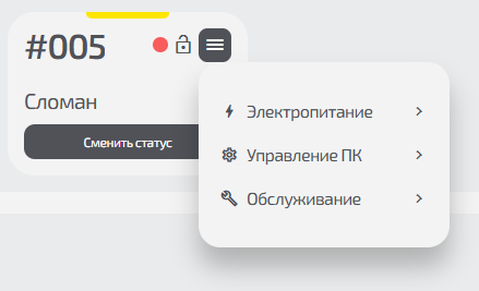 - Обслуживание — смена номера ПК или статуса;