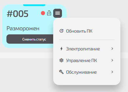 | На ПК не отображается нужное меню | Возможно, PC в статусе «Разморожен» или «Выбывший» |