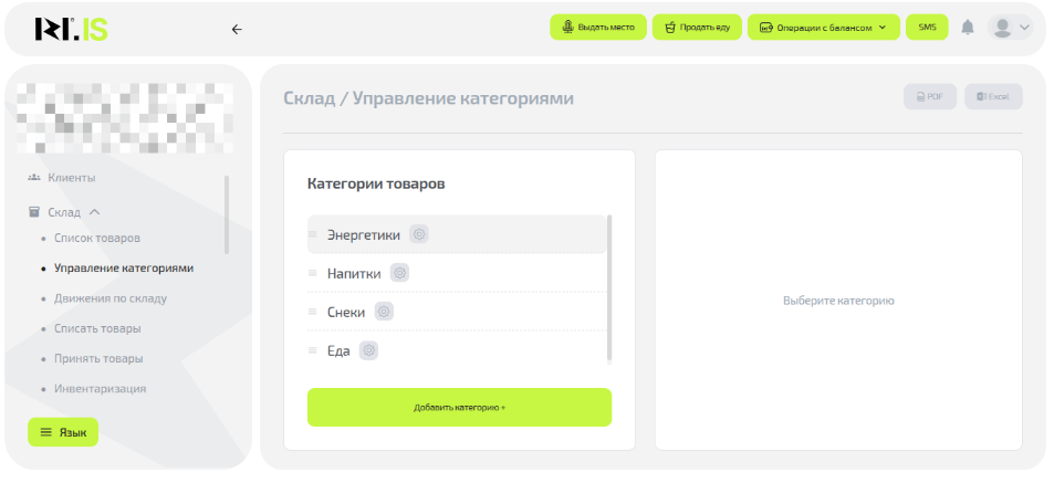 1. Перейдите в раздел «Склад» -> «Управление категориями».