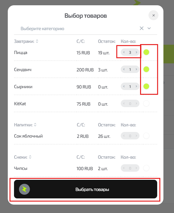 5. Подтвердите прием нажатием кнопки «Выбрать товары».
