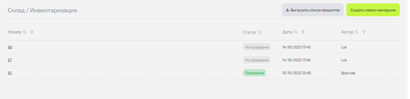 • У вас есть права доступа для управления складом (создание товаров, приёмка, списание).