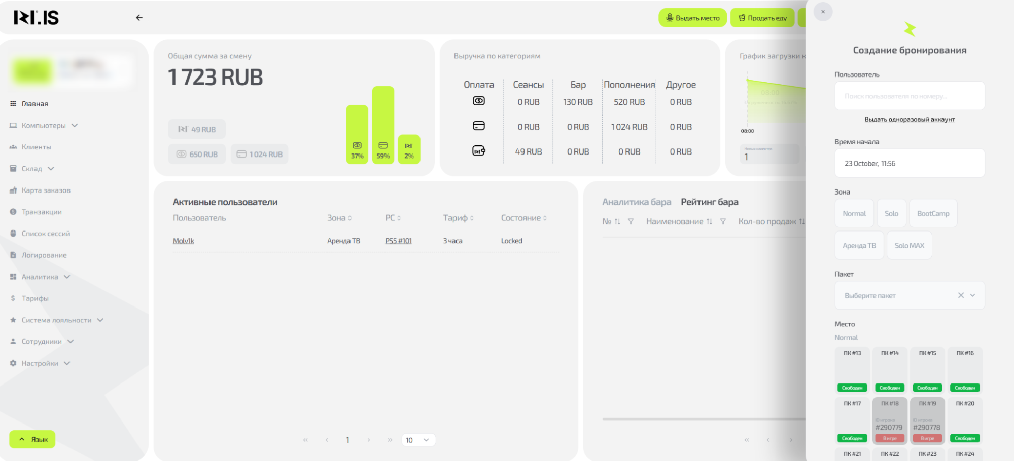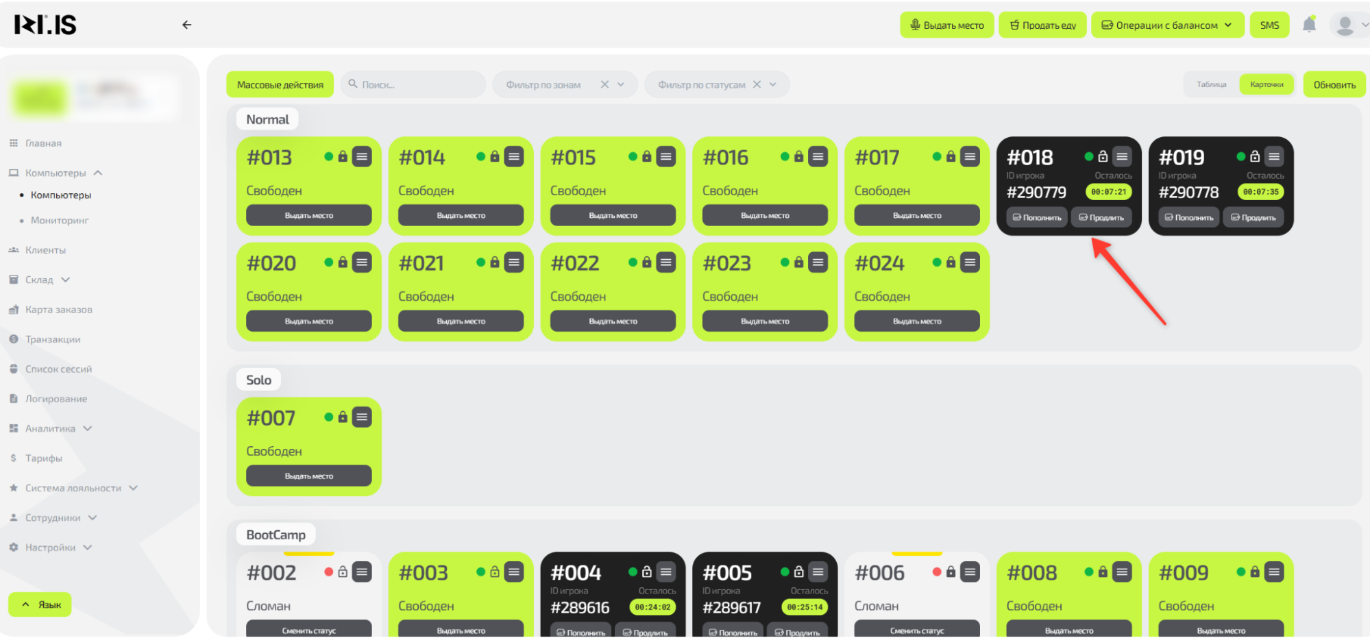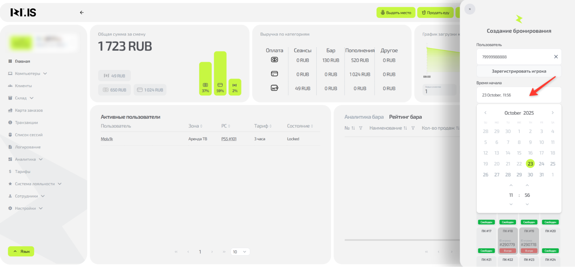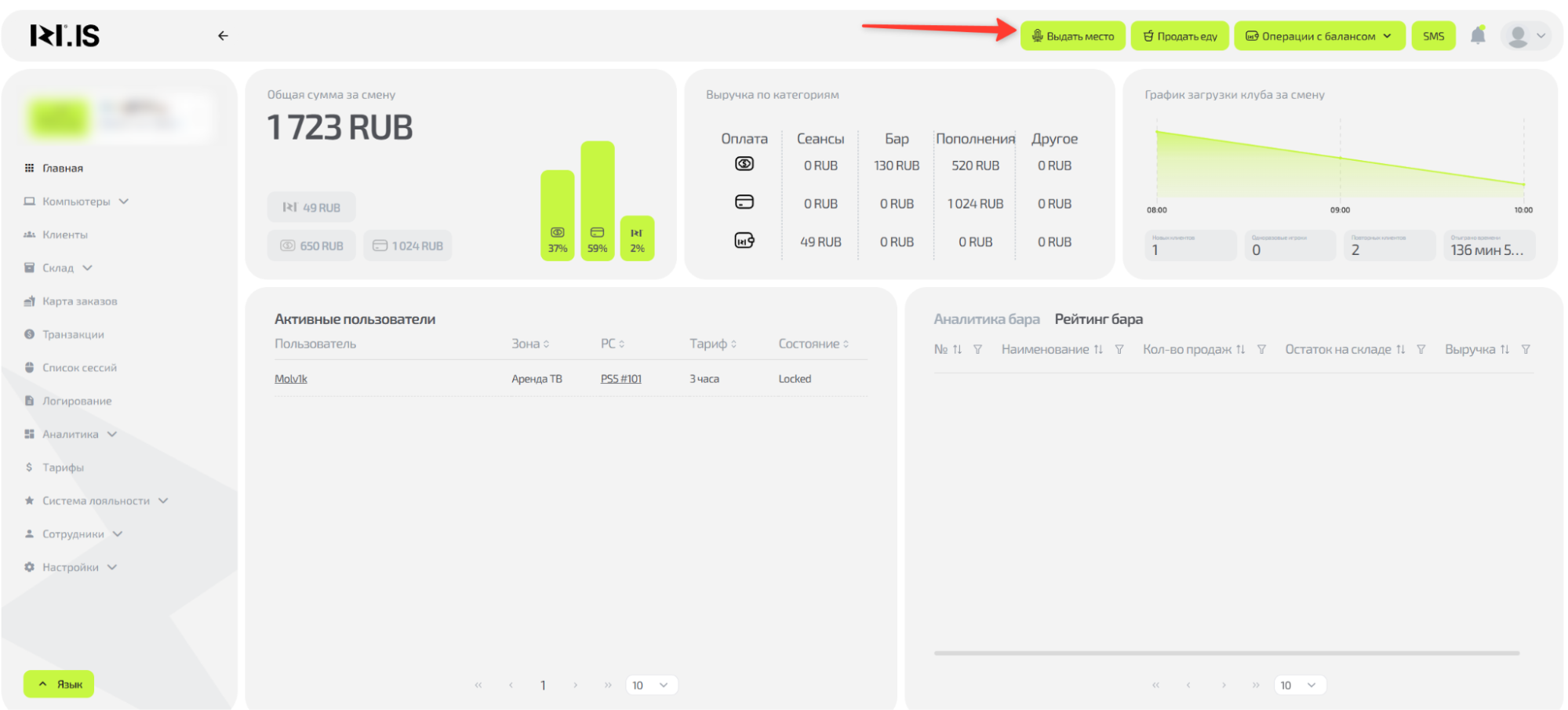 Понять логику процесса выдачи места и выполнить его от выбора клиента до приема оплаты. Это ключевой процесс, с которого начинается любая игровая сессия и формируется заказ.