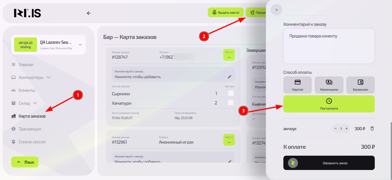 Научить администратора работать с заказами по постоплате, когда клиент оплачивает товары после получения.
