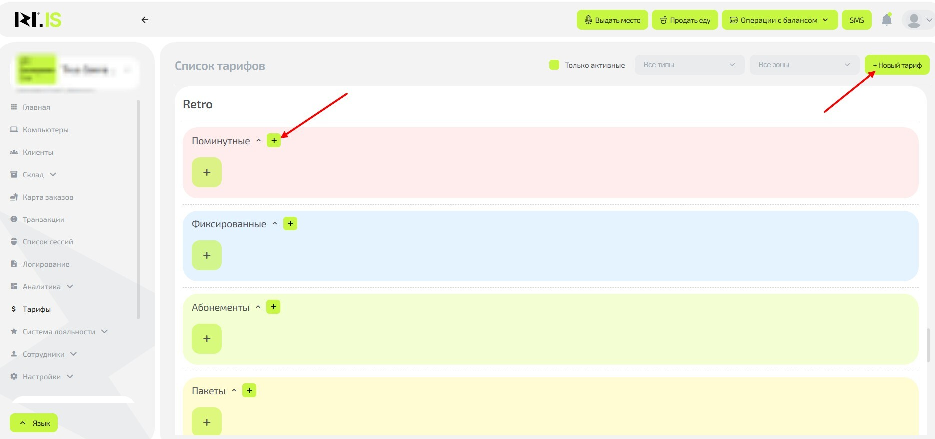 - Нажмите кнопку «+ Новый тариф» в правом верхнем углу