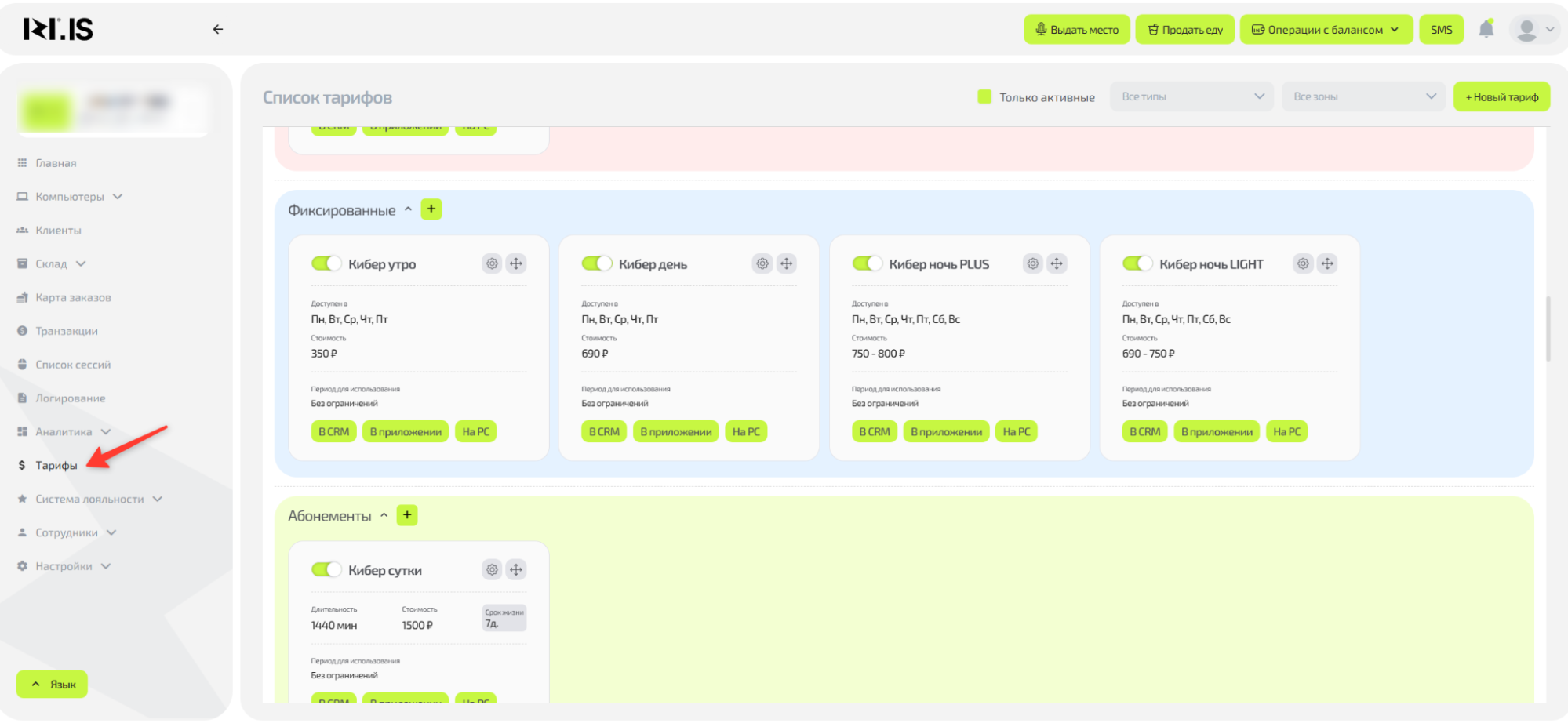 - У вас есть права администратора с доступом к разделу "Тарифы".