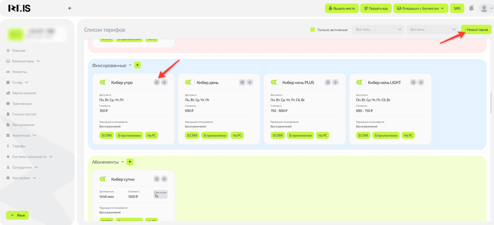 Показать, как сотрудник клуба может настроить видимость тарифов в мобильном приложении, CRM и на ПК в системе IZI CRM для удобства клиентов и эксклюзивных предложений.