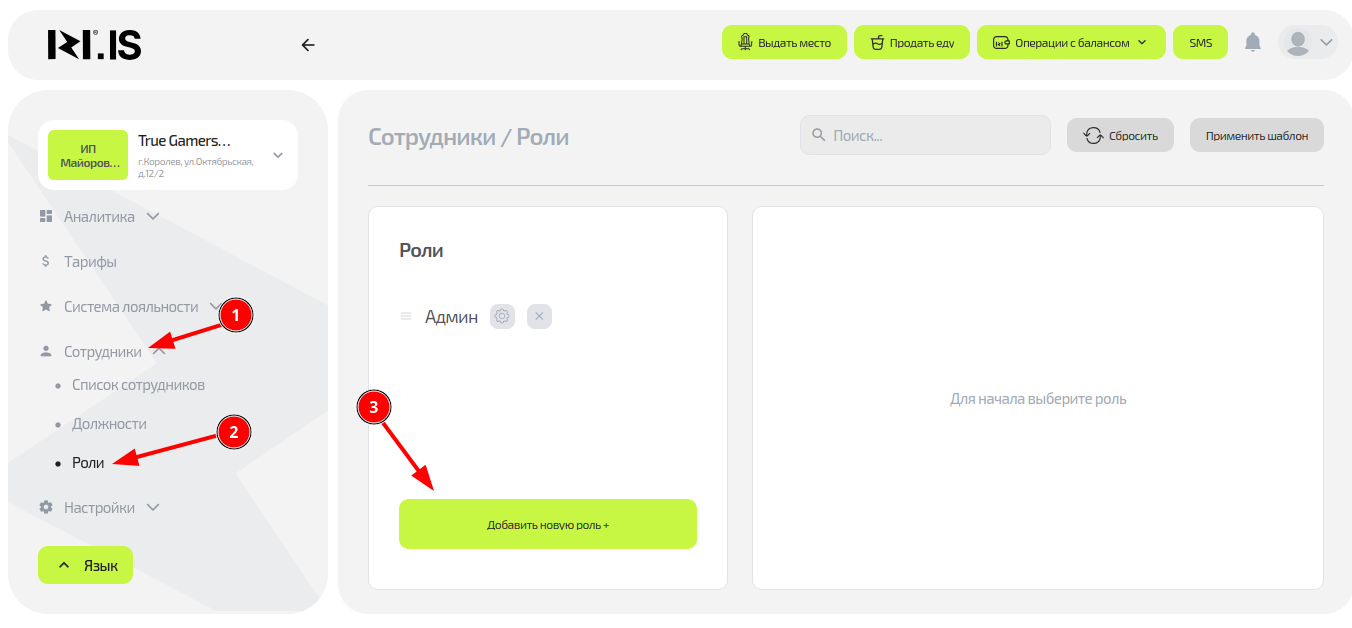 1. В разделе «Сотрудники» перейдите в подраздел «Роли».