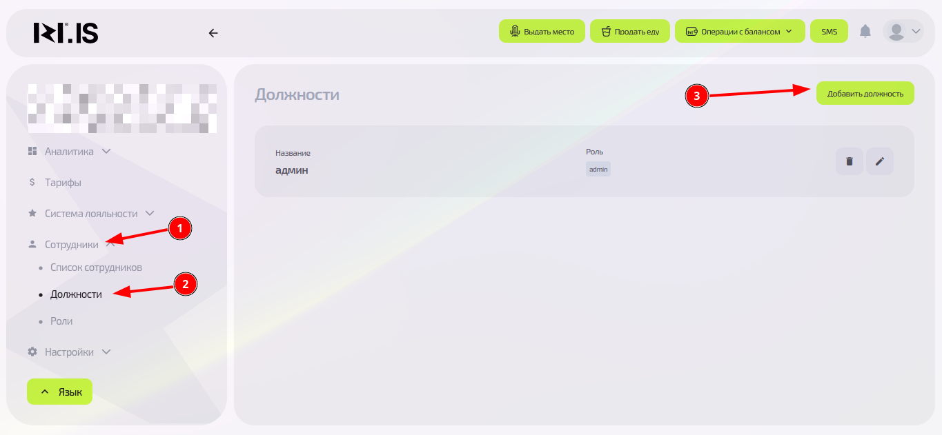 Зачем это нужно: Должность — это «публичное» название для сотрудника (например, «Бармен» или «Старший администратор»), которое связано с конкретным набором прав (ролью).