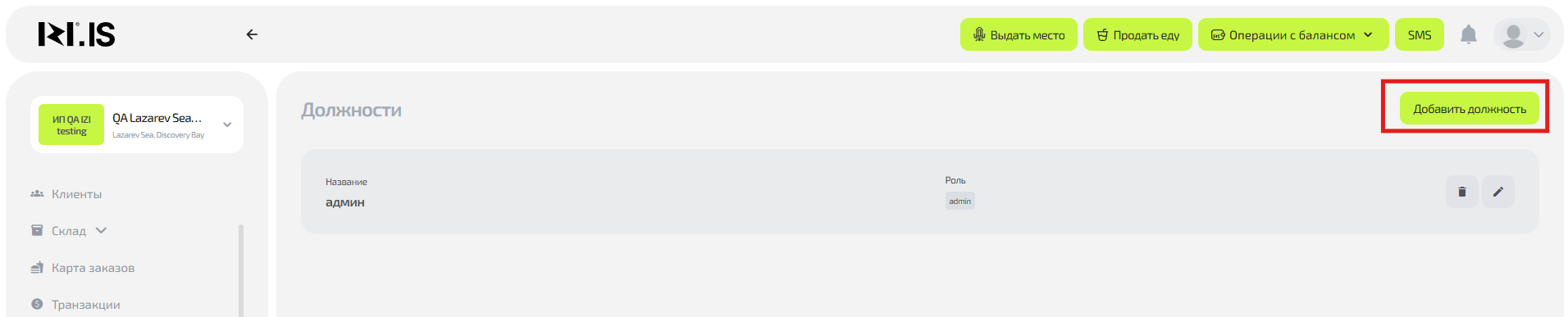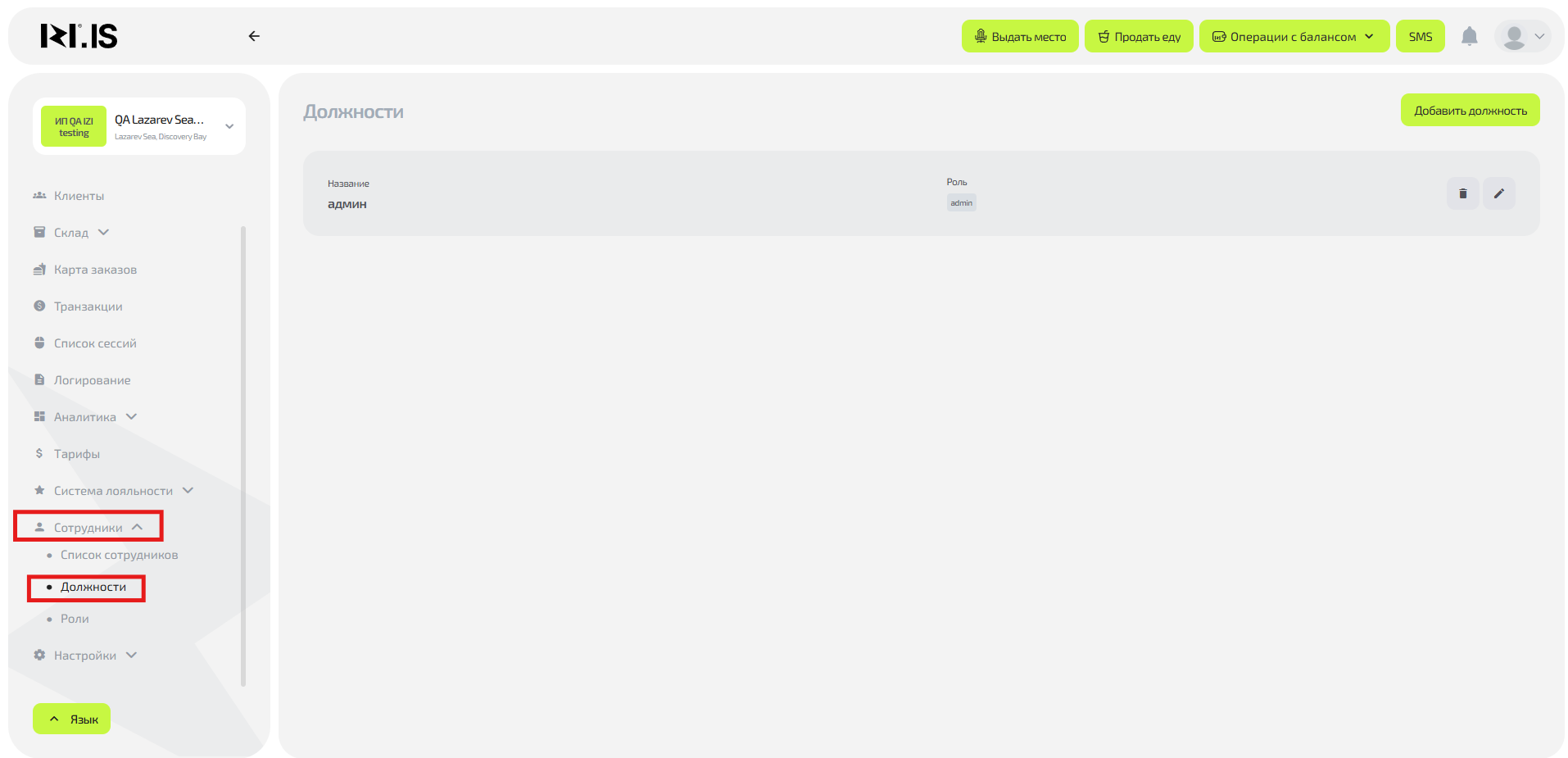 После этого должность появится в общем списке и будет доступна для назначения сотрудникам.