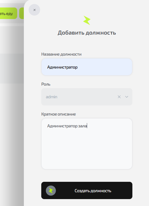 - Нажмите на кнопку сверху справа «Добавить должность», откроется окно добавления должности;
