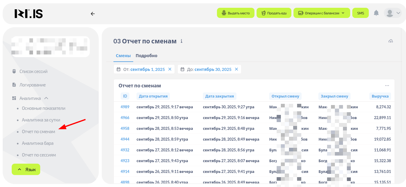 - Список смен: Проверяйте, все ли смены закрыты вовремя