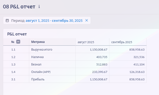 Зачем это нужно: Чтобы увидеть чистую прибыль и основные статьи доходов/расходов
