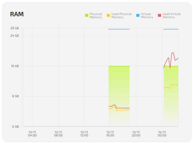 | Used Virtual Memory | Объём использованной виртуальной памяти; рост может говорить о нехватке ОЗУ. |