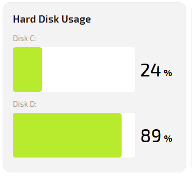 - Hard Disk Usage — процент использования диска в реальном времени.