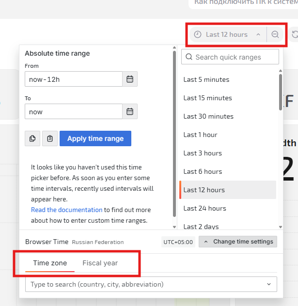 - Выбор временного интервала — последние 1 час, 12 часов, сутки, неделя или произвольный диапазон;