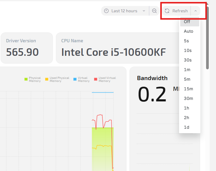 - Автоматическое обновление — выберите интервал (например, 30 сек, 1 минута, 5 минут).
