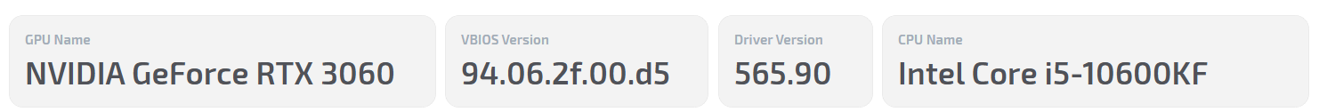 | GPU Name | Модель видеокарты (например, NVIDIA GeForce RTX 3060). |