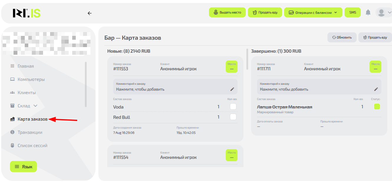 | Нет заказов при работающем клубе | Проверьте, открыта ли смена |