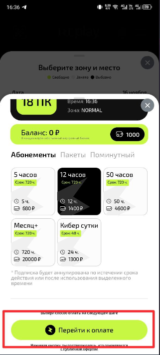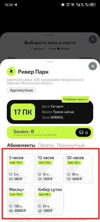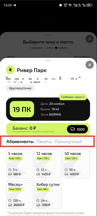 - Выберите подходящий вариант: Абонемент, Пакет или Поминутный