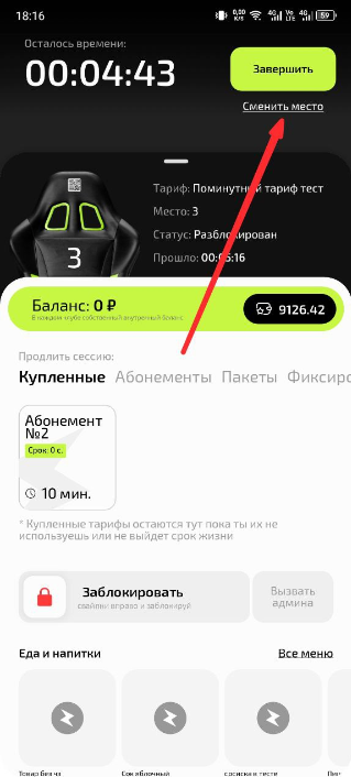 1. Во время активной сессии найдите в приложении кнопку «Сменить место»