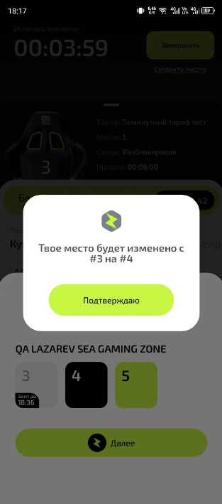 3. Дождитесь подтверждения успешной смены места