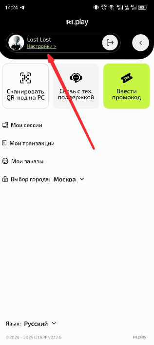 2. На главном экране нажмите на иконку профиля в углу экрана