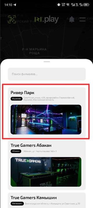 1. Из списка выберите клуб, где будете использовать карту