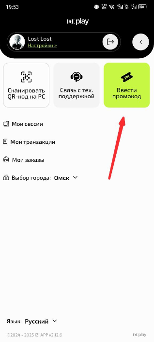 | Не могу найти раздел для промокодов | Что делать: Проверьте основное меню приложения. Иконнка “Ввести промокод”. Если не нашли, попросите администратора клуба вам помомчь. Зачем? Интерфейс приложения может обновляться, меняя расположение элементов. |